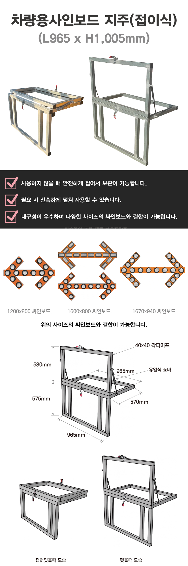 [H-53 싸인보드점멸표지 차량용 싸인보드] 화살표싸인보드지주(접이식)