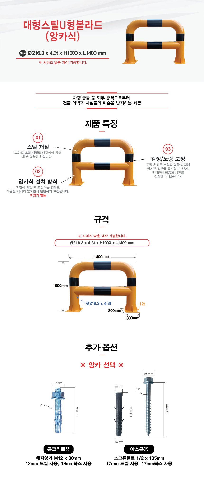 [H-46 추락방지(U형볼라드) 스틸U형볼라드 (특수 사이즈 주문가능)] 대형스틸U형볼라드(앙카식)