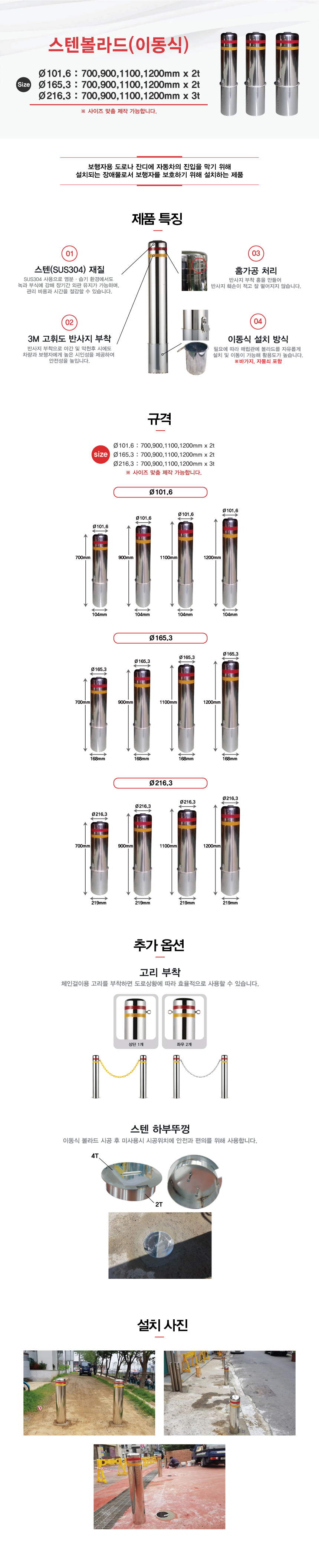 [H-10 스텐(스틸)볼라드 스텐볼라드 (특수 사이즈 주문가능)] Ø216스텐볼라드/이동
