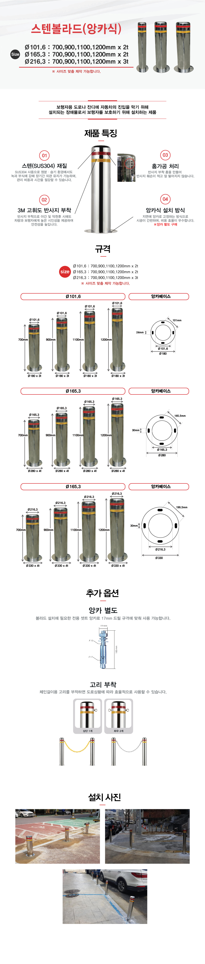[H-10 스텐(스틸)볼라드 스텐볼라드 (특수 사이즈 주문가능)] Ø216스텐볼라드/앙카