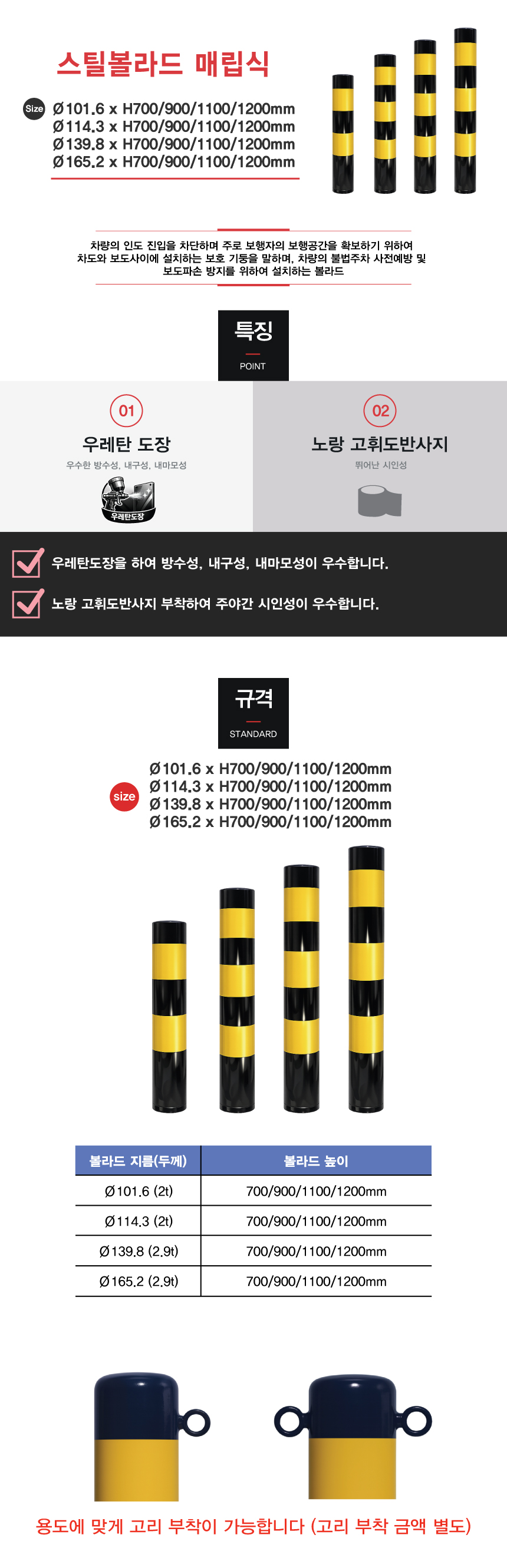 [H-10 스텐(스틸)볼라드 스틸볼라드 (특수 사이즈 주문가능)] Ø114스틸볼라드/매립