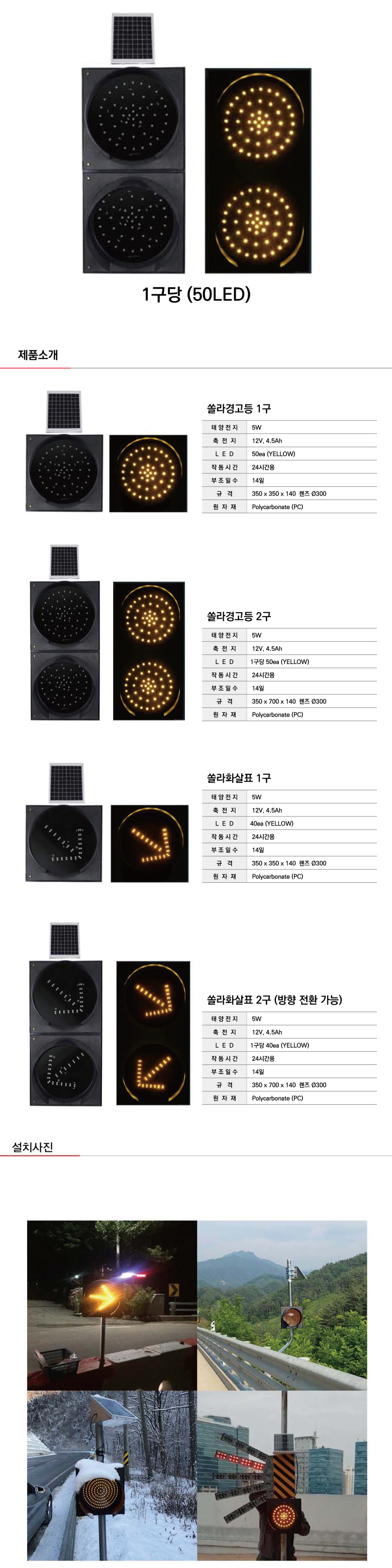 [H-24 쏠라교통표시등 경고등] 쏠라경고등2구(황색)