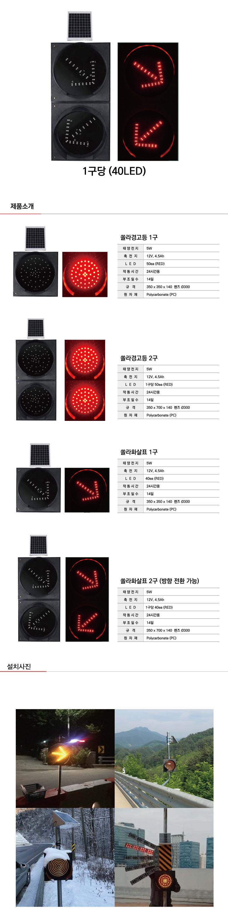 [H-24 쏠라교통표시등 경고등] 쏠라화살표2구(적색)